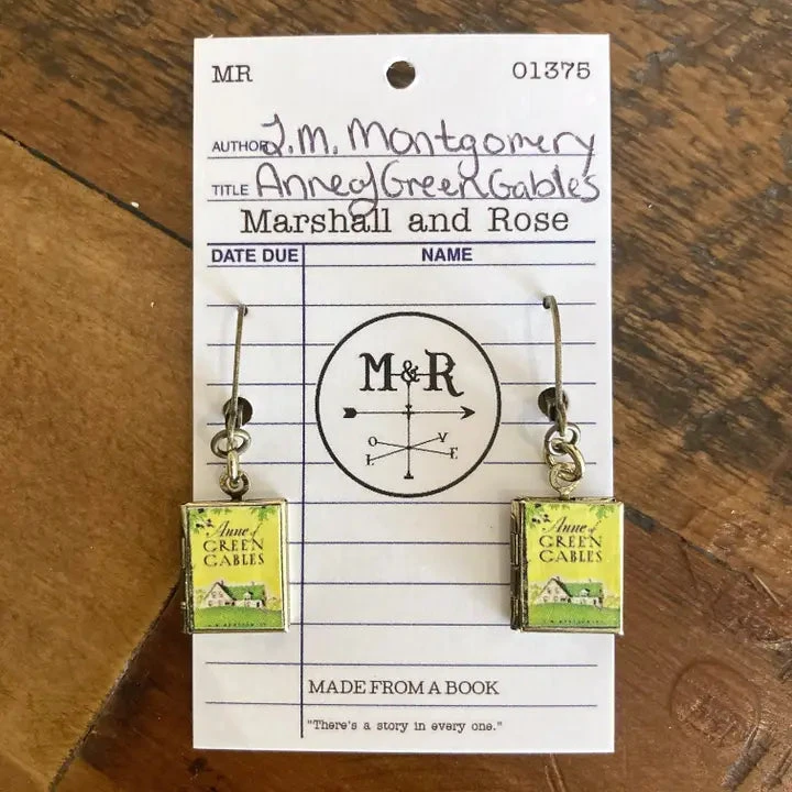 Book Locket earrings in Anne of Green Gables! Our new book locket earrings are made with nickel free materials and feature the most beloved classic and modern books! They are on lever back style backers and are sealed with a gloss finish for durability. Each little locket measures about 1/2 long and 3/8 wide and is a little less than 1 1/2 inch long while wearing them.