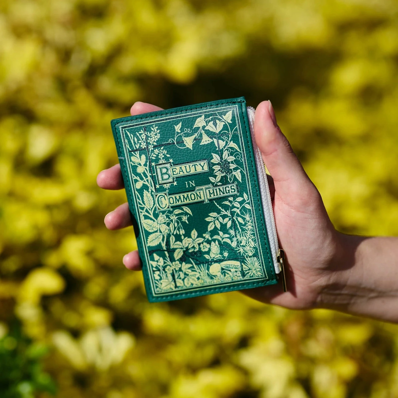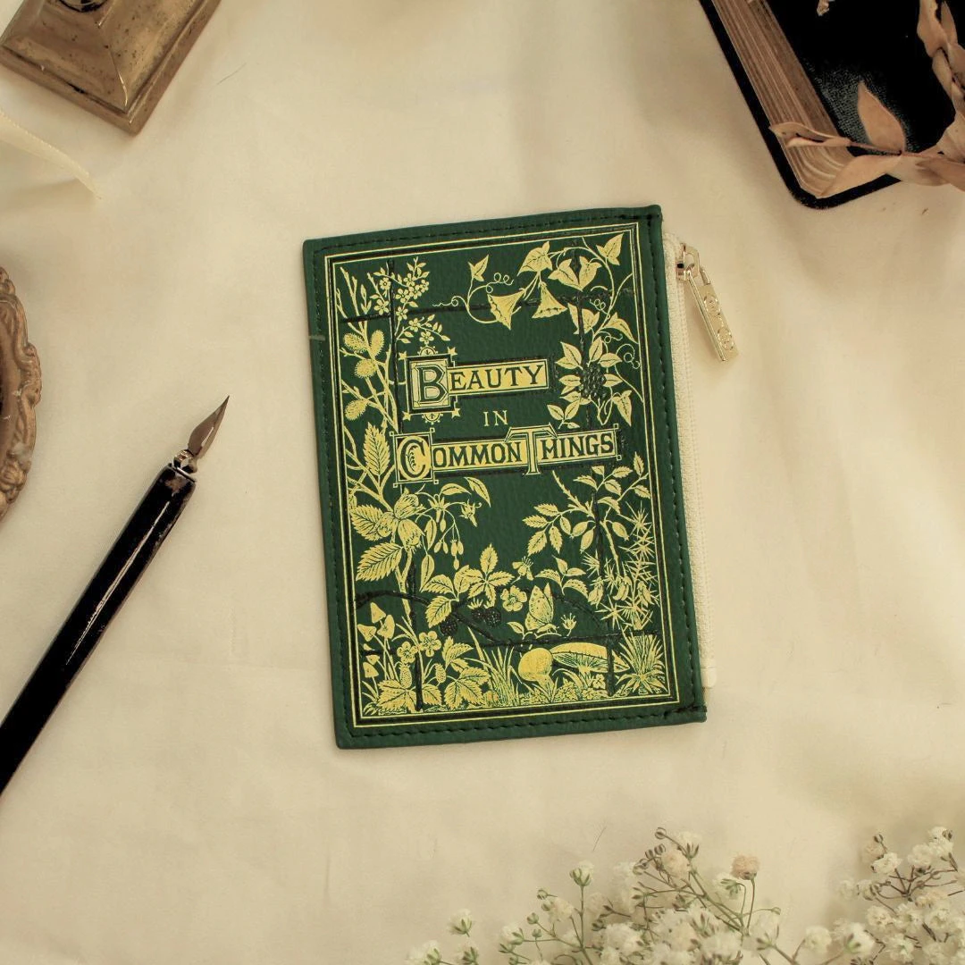 Celebrate the beauty of the natural world with this striking vegan leather coin purse, inspired by Miss A. C. Chambers’ book ‘Beauty in Common Things’, published in 1874. This book is notable for its deep appreciation of everyday plants and flowers found across the United Kingdom, blending botany, poetry, and art in its pages. The coin purse features a beautiful botanical illustration set against a rich green backdrop, perfectly capturing the book’s essence. Whether you’re dressing up for a formal occasion or simply going about your everyday routine, this purse is sure to add a unique touch to your outfit, just as the book adds a unique touch to literature.