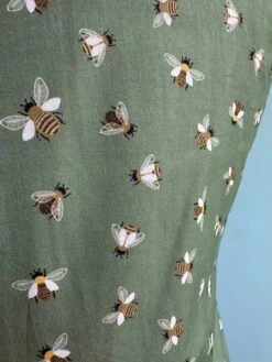Canvas clutch bag in black with embroidered bees throughout. This bag comes with a metal chain strap in an antiques brass and a short faux leather handle.