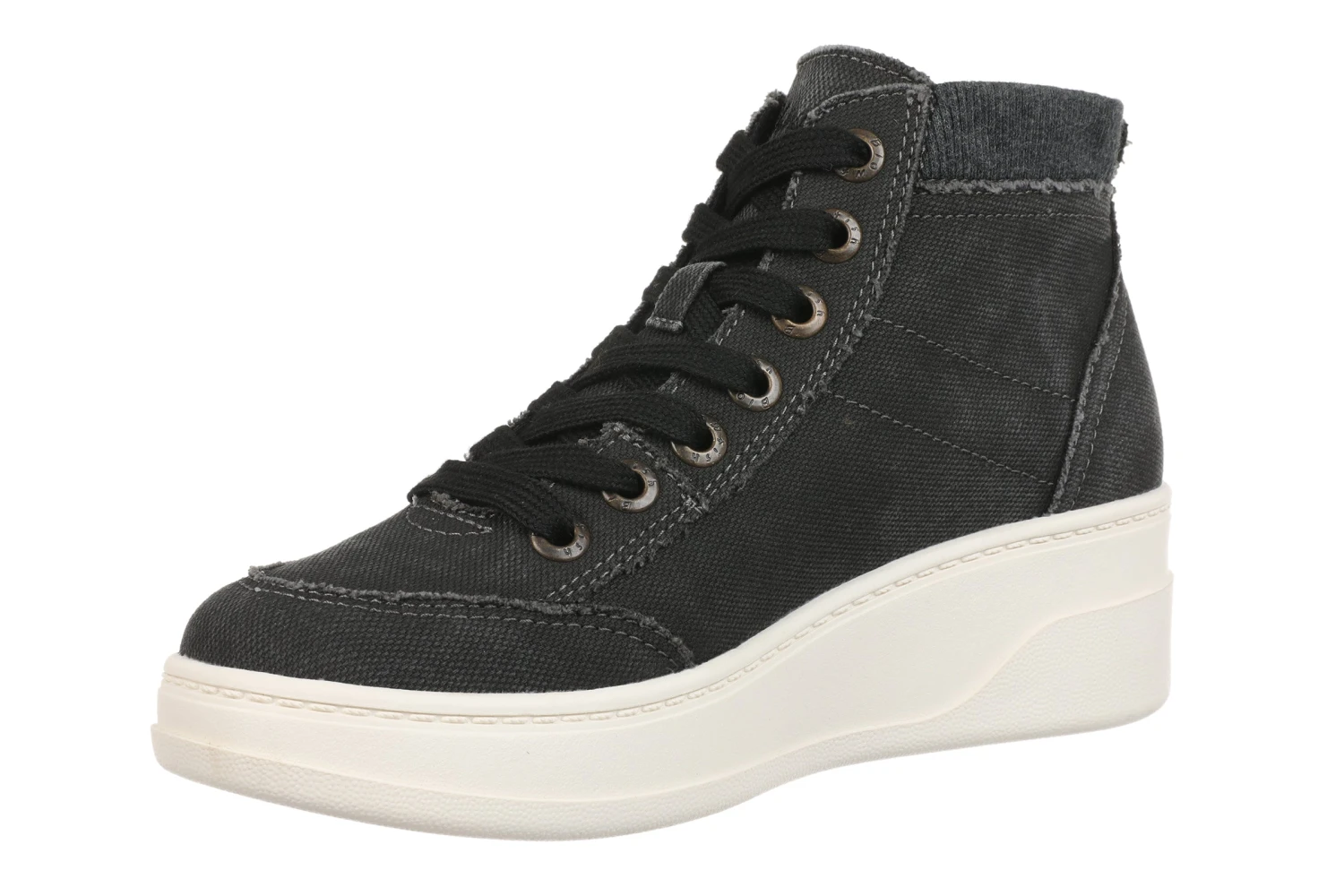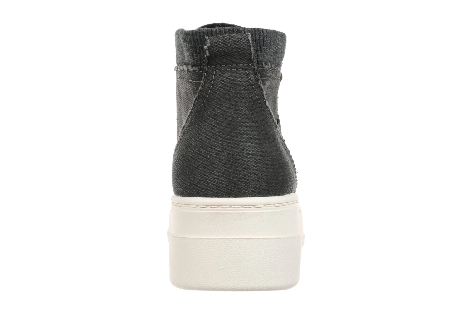 Canvas high top sneakers in black with a lace front and side zip closure.
