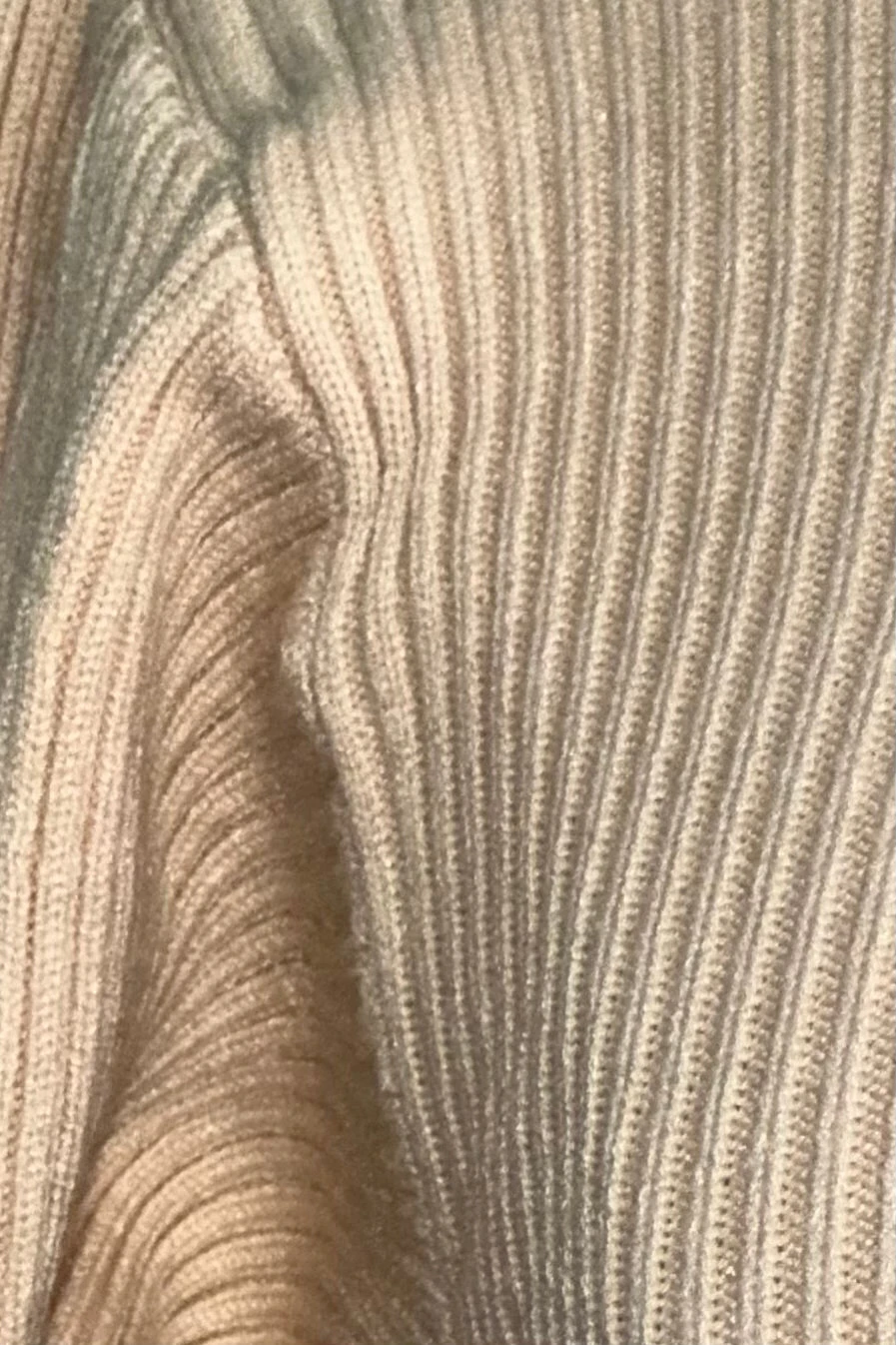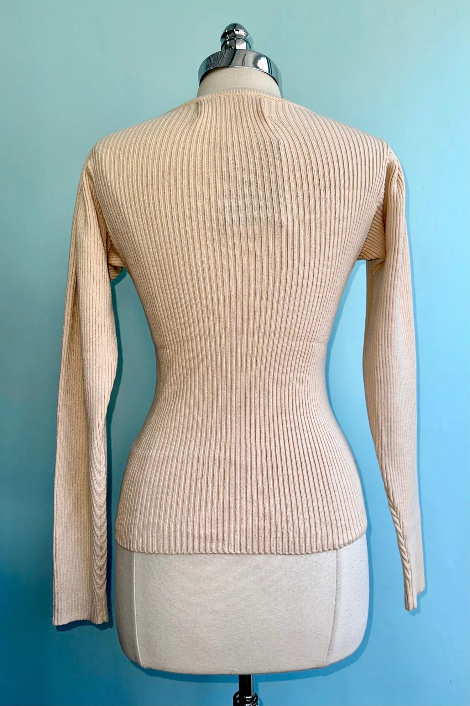 Super soft, ribbed pullover sweater in cream with puffed shoulders and long sleeves.