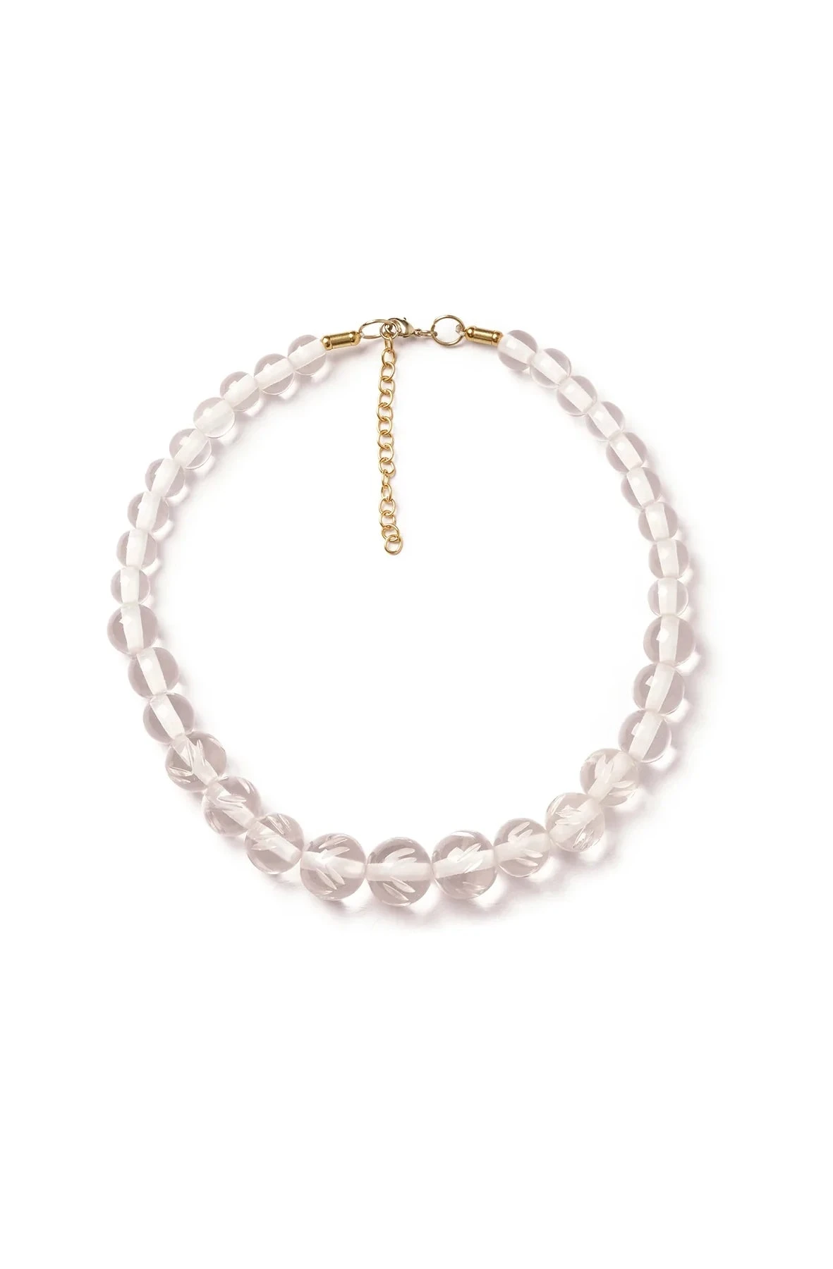Crystal heavy carve beaded necklace by Splendette. This is approximately 18″ long and the biggest bead is 1″. Clasps closed.