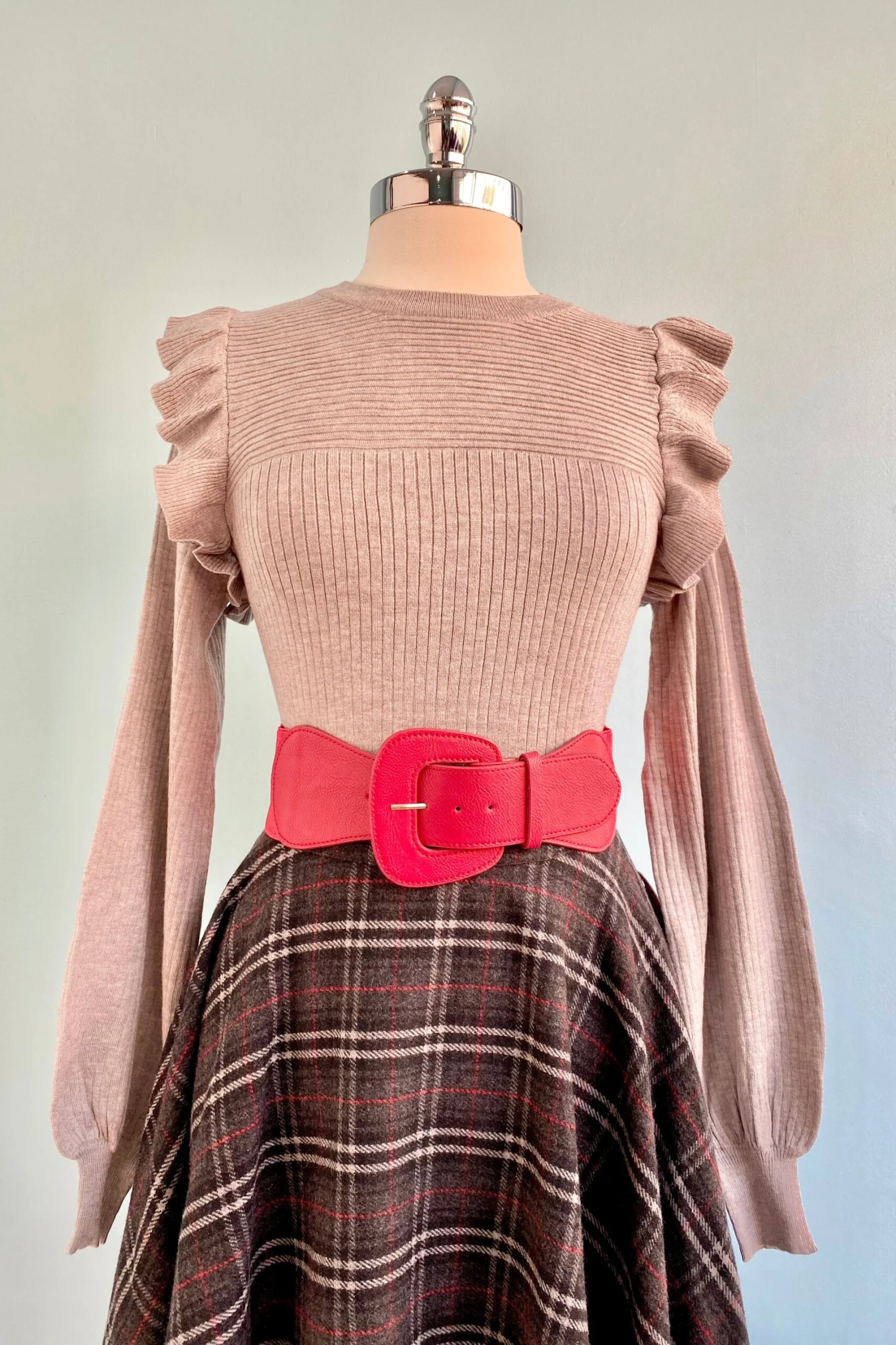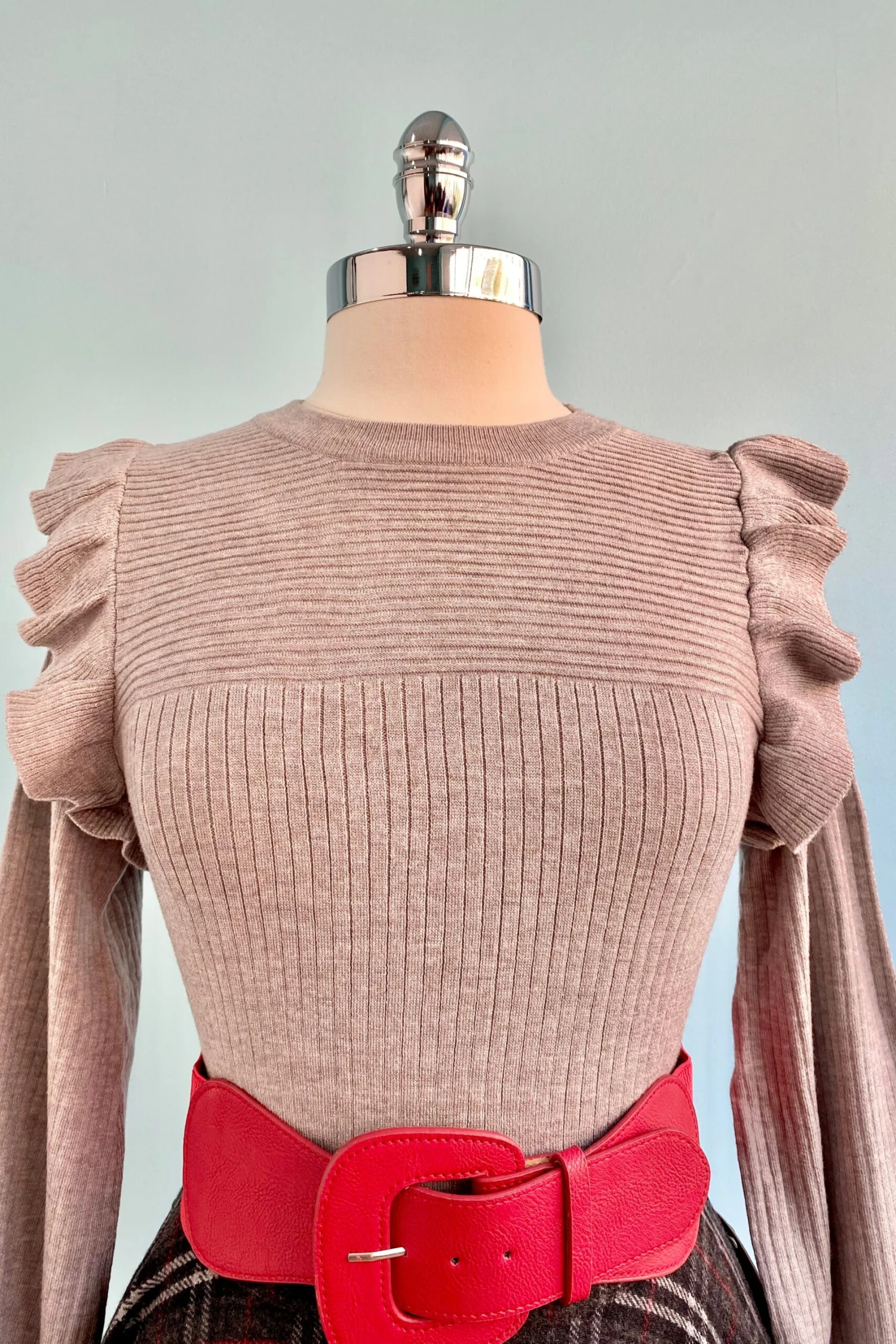 Heather grey ribbed knit pull-over sweater. This sweater is the perfect fall piece to pair with your Halloween or wool Sophie skirts!