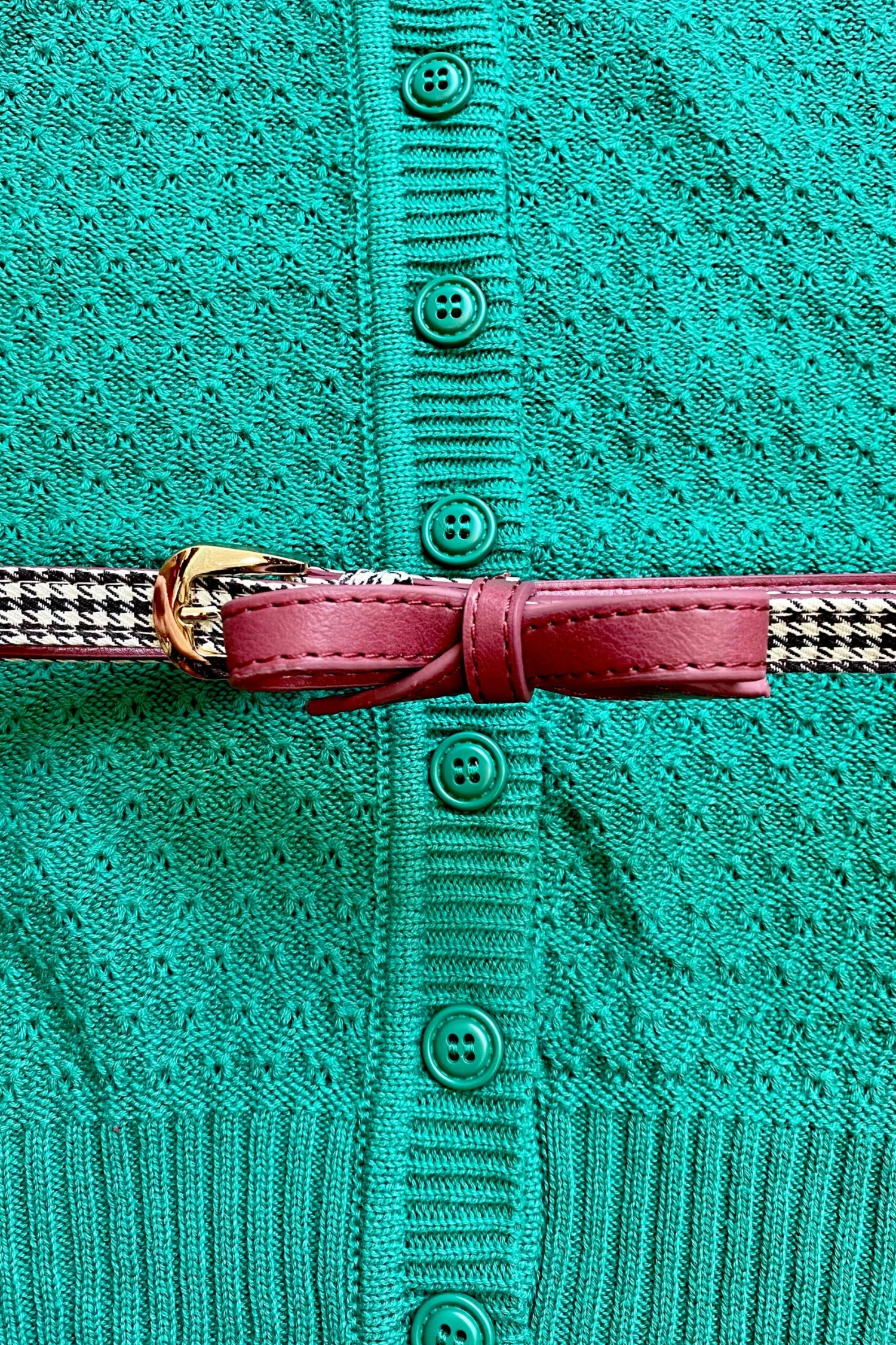 Skinny, adjustable belt in hounds tooth with a red bow. This is made of 90%Polyester, 10% Acrylic and contrast is 100% Polyurethane.
