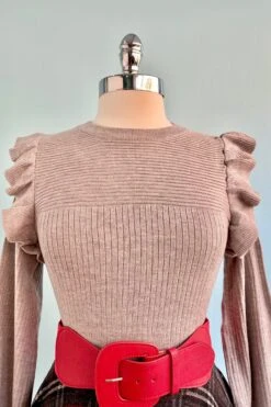 Heather Grey Shoulder Ruffle Crewneck Sweater
