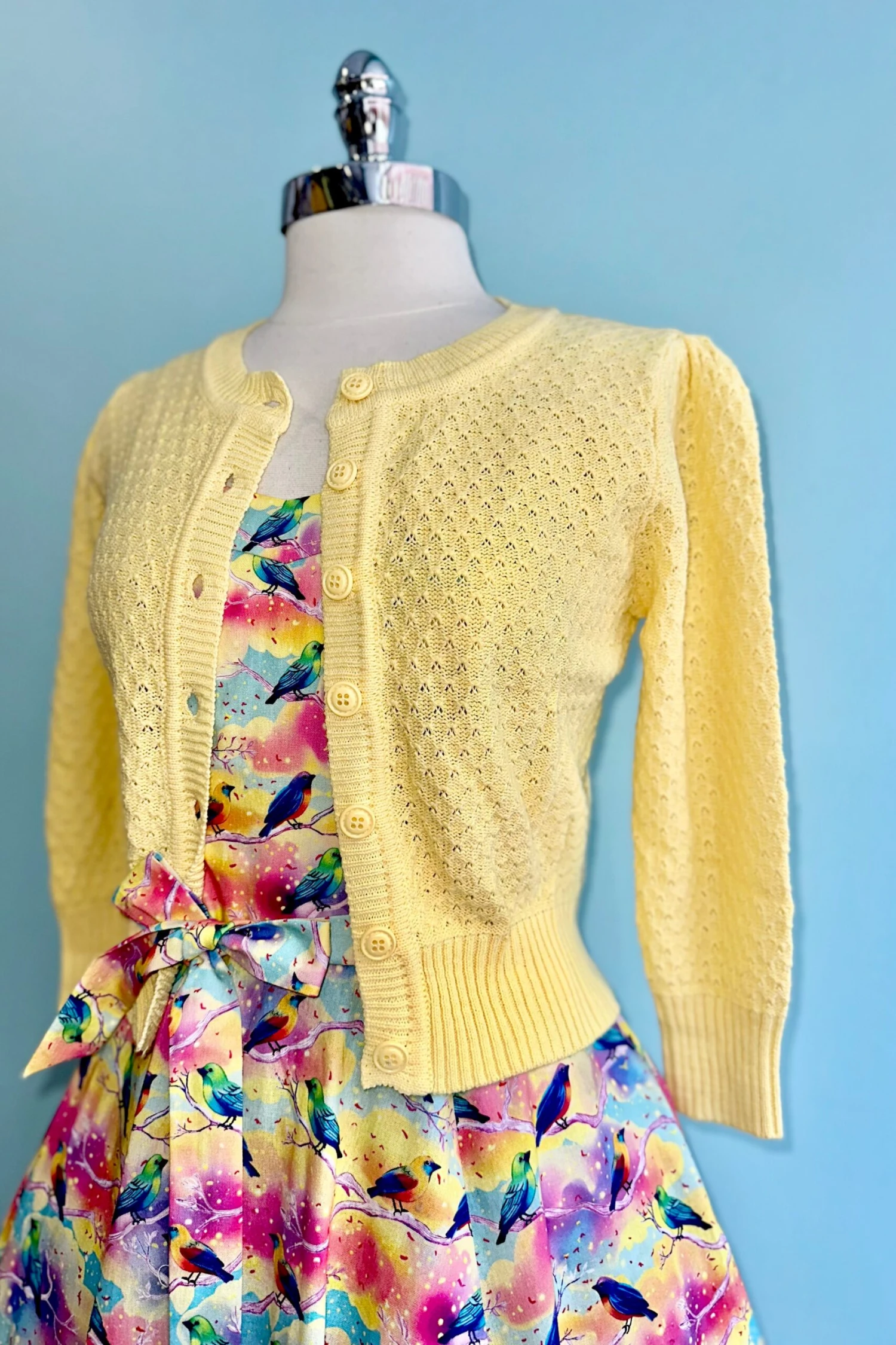 The Lori dress has a sweetheart neckline and adjustable straps. The fabric is a woven linen in teal, purple, pink and orange with little birdies on trees throughout. This dress has a great fit! The back bodice is smocked which allows ease of wear and comfort. Zips up the side, is lined at the bodice, unlined skirt and has pockets! Original print artwork by CKNV Print Design.