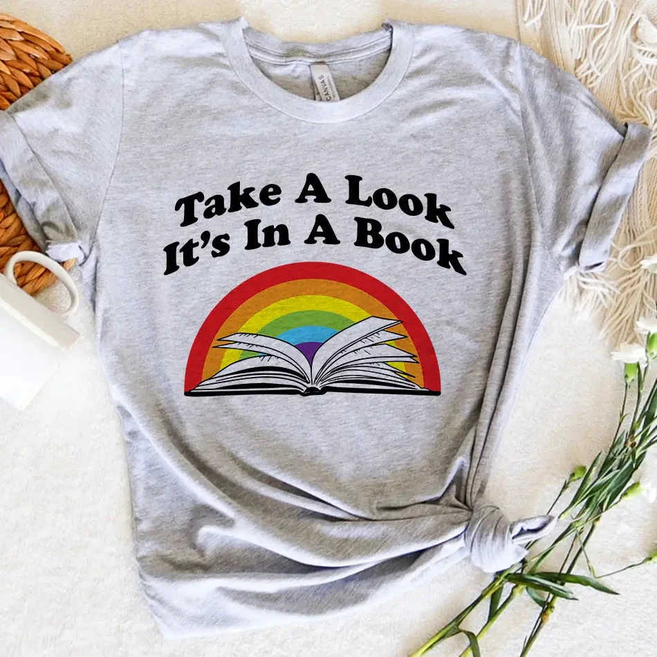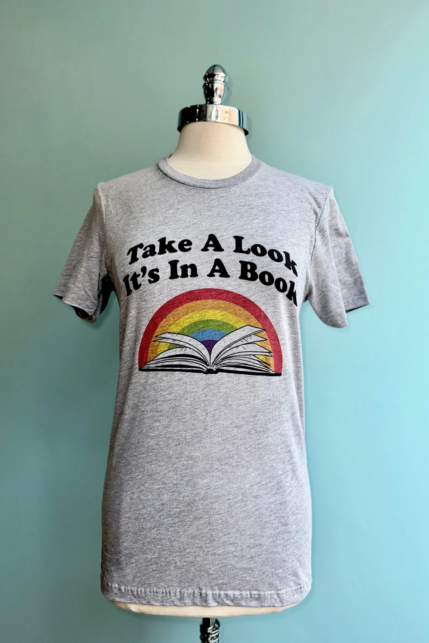 Grey Reading Rainbow T-shirt. Unisex sizing and made of 100% Cotton.