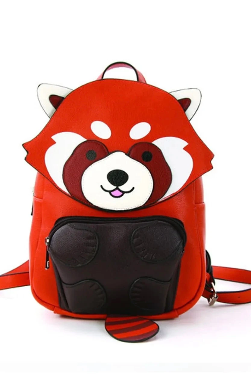 An adorable orangey red panda backpack