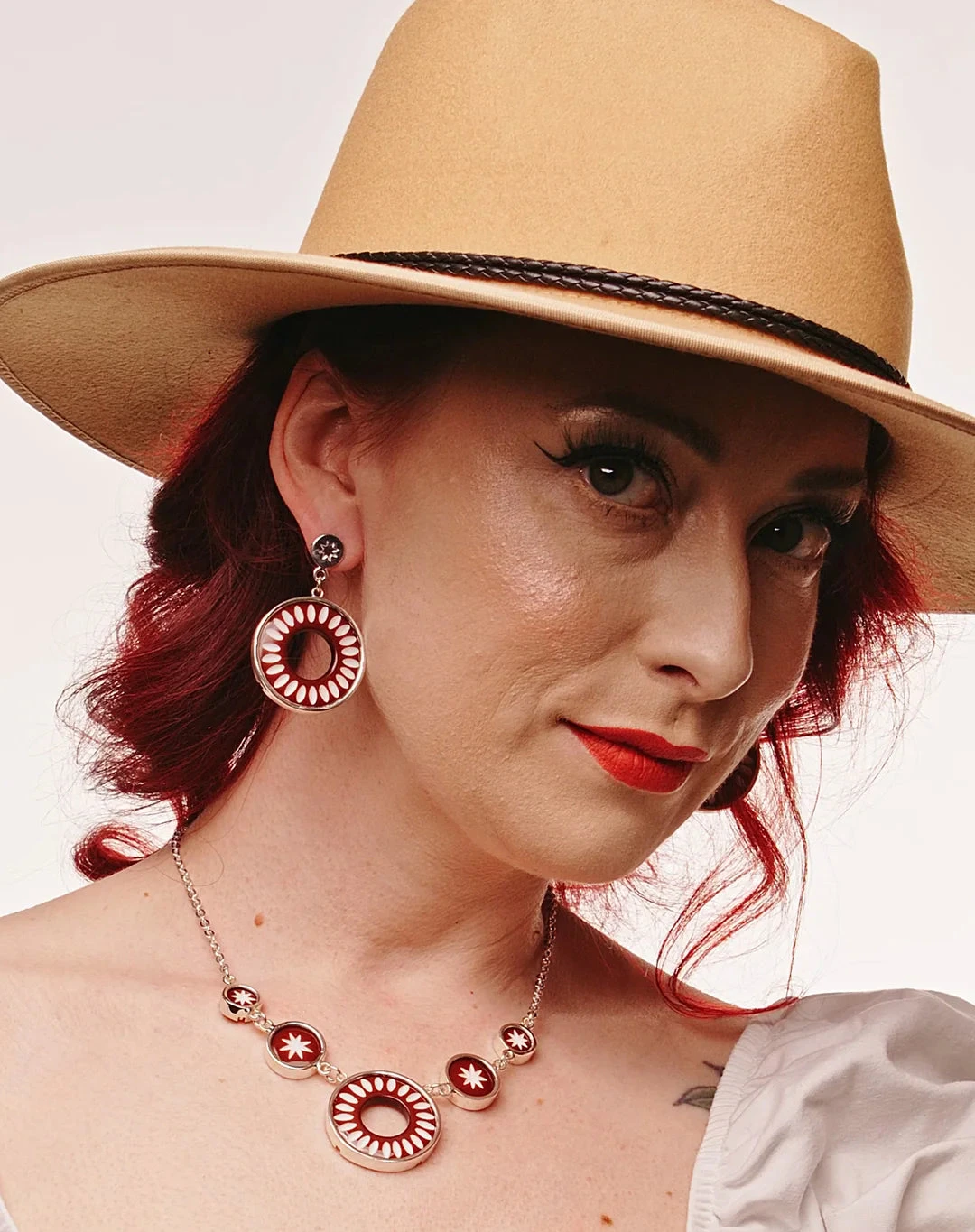 Circle up! These statement drops bring classic Western tones into a bold, wearable shape. Carved like a vintage tooled concho, the warm brown resin is set in silver-tone metal and finished with our signature starburst studs. Lightweight and made to move with you.