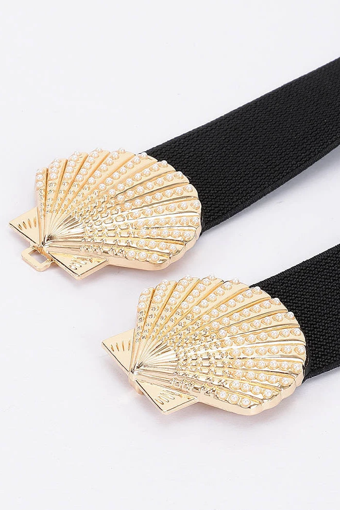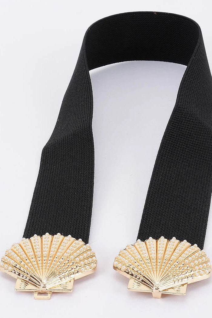 An elastic belt with a double gold shell closure. Super stretchy and comfy!