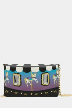 Get ready to spin into style with our SPIN ME WOC wallet! This unique carousel-themed WOC wallet features a convenient chain strap and eye-catching heart and stud details. With multiple card slots, you’ll have plenty of storage for all your essentials. Upgrade your accessory game with this playful and practical wallet!