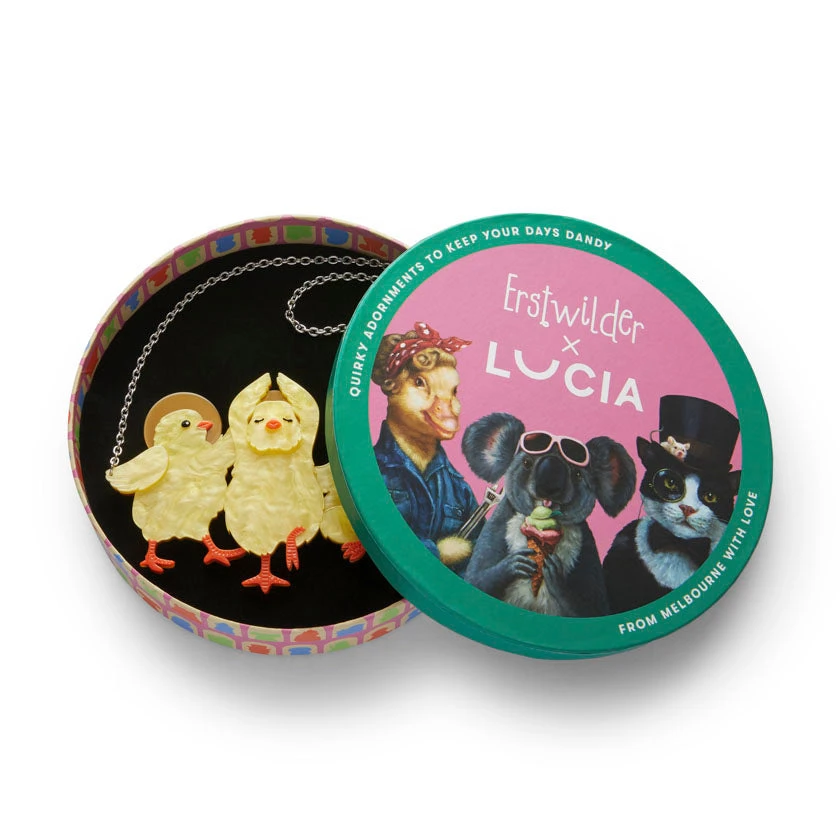 • Please be aware that resin is akin to ceramic and glass, and therefore may be damaged if dropped or knocked. Keep your Erstwilder jewelry neatly tucked away in your gift box when not being worn, avoid contact with perfumes, lotions, water and excessive sunlight, and you’ll have your piece for years to come. Clean gently by hand.
