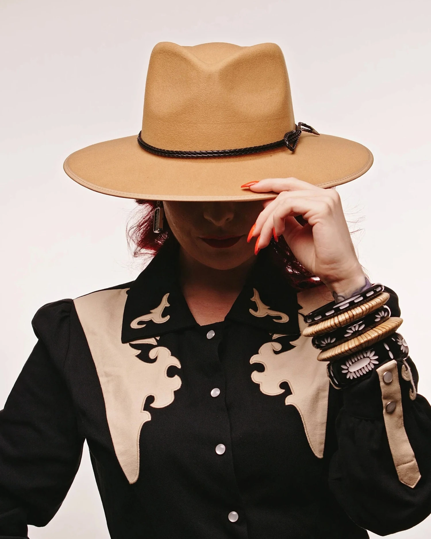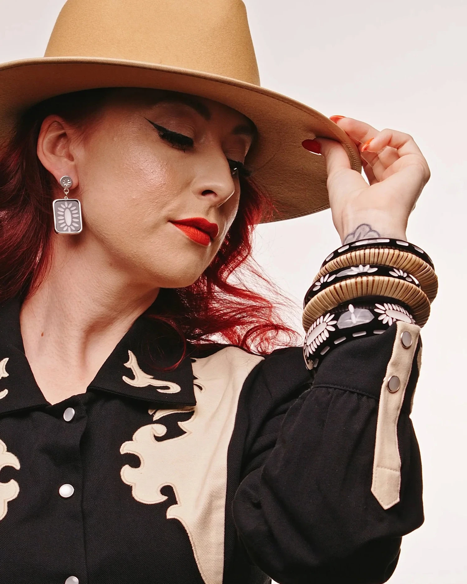 Sleek and striking, the Wide Rebel Black Bangle brings a flash of colour and a whisper of the wild frontier. Featuring white arrow-carved detailing and a central star, it’s subtle, stackable, and seriously stylish.