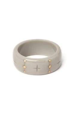 Go bold and bright with our Wide Smoky Wire Bangle! Inspired by 1940s bakelite, this bangle comes in a smoky grey that is sure to turn heads.