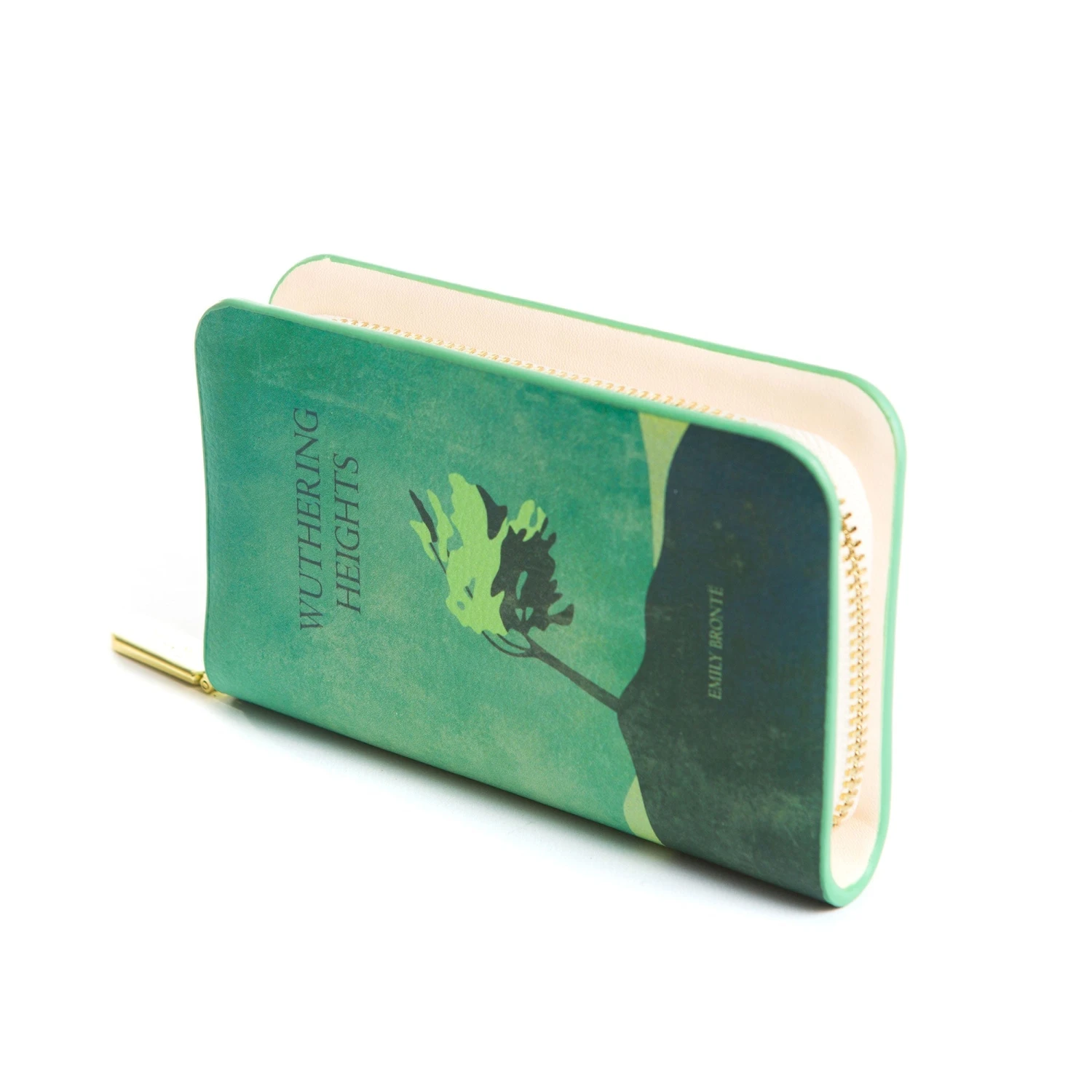 This enchanting wallet purse would be a welcome addition to any bookworm’s life! It celebrates Emily Brontȅ’s tragic romance, Wuthering Heights. This faux leather purse features a gorgeous two-tone green design behind a lone tree buffeted by the wind. The back of the purse is inscribed with the beautiful quote ‘Whatever our souls are made of, his and mine are the same.’
